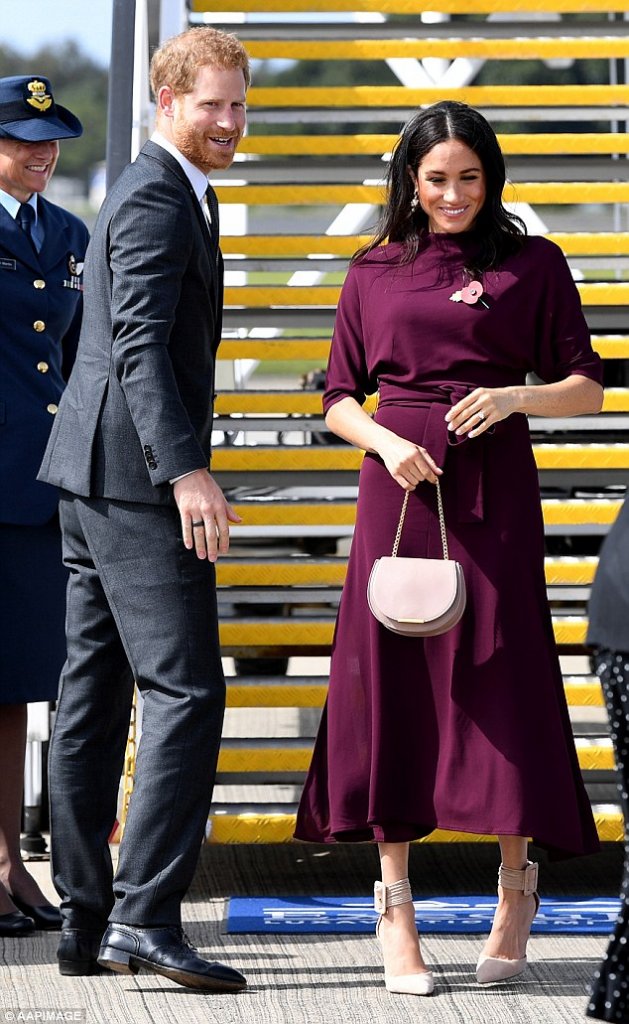 Meghan Markle stuns in a $450 Hugo Boss dress - as she bids farewell to Australia for New Zealand | Daily Mail Online