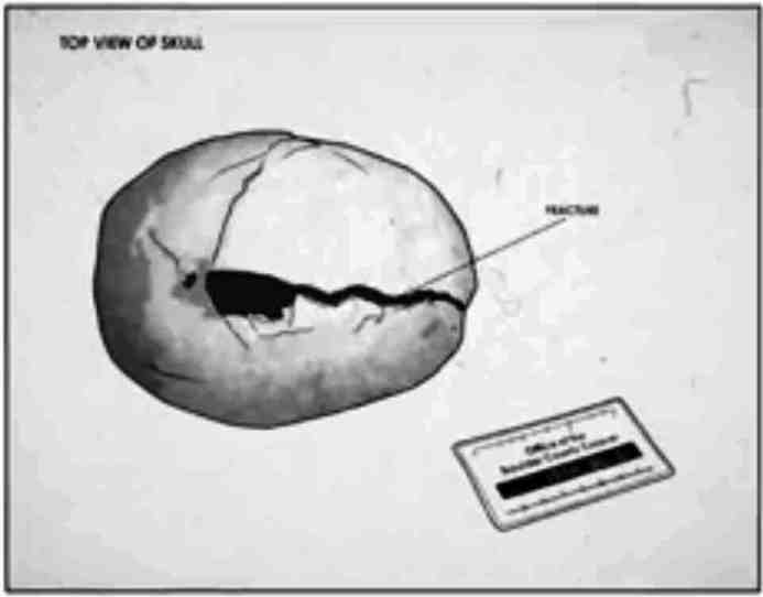 During the segment on this in the CBS documentary, they also showed another sketch which more accurately depicts the actual fractures. They showed it without giving an explanation or telling us where it came from. But it appears to be another artist’s rendering of the actual autopsy photo that was released by Smit (even down to the coroner’s label that was in the photo showing below the skull). I screen capped that sketch: