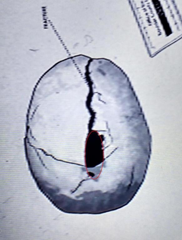 If you look at the above post, you’ll see that if the linear fracture is pushed together, it fits even more perfectly with the ellipse I drew over the actual depressed fracture: