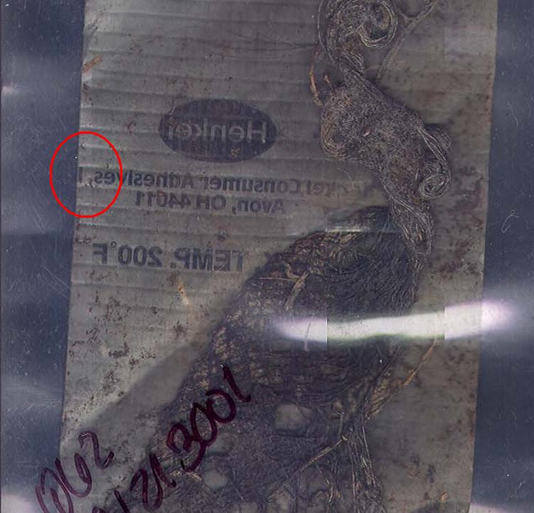 But, we can do logo-matching, particularly if we look at the backs of the tape. The cutting was done through the logos, but at differing locations, making the matching not particularly difficult. :thumb: Oddly enough, I believe the pieces of tape from the remains were attached in the order the FBI numbered them (I think this is purely coincidence).