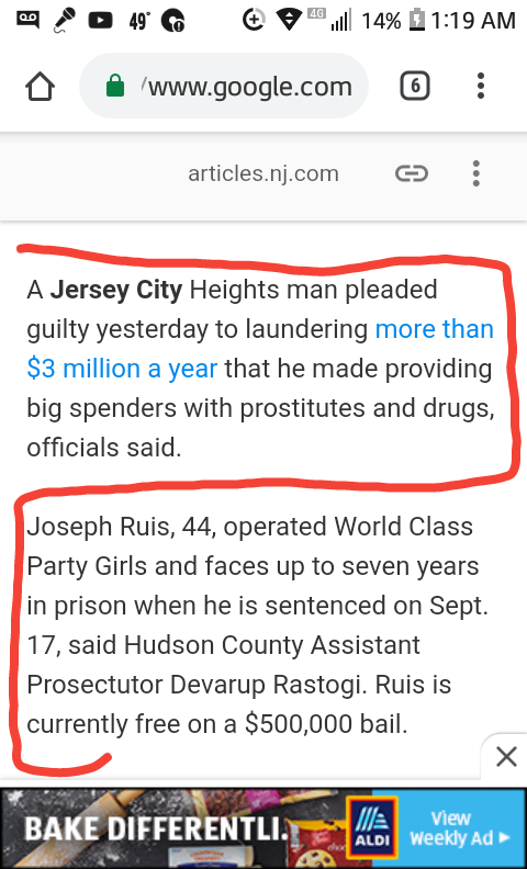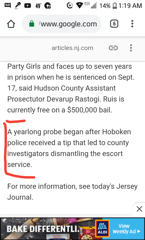 Ruis was out on a $500,000 bail at the time of Shannan's disappearance. He spent 5 years (out of 7) in the slammer. Had Shannan been found before his conviction I assure you Mr. Ruis would still be in prison. The in NJ case was made because of a tip someone in LE had received. They infiltrated the escort service and took it down. They didn't get any farther because of this LISK BS.