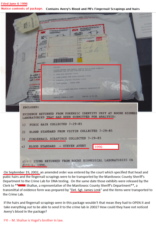 He seems to be relying explicitly on the form in the episode alone to prove Lenk was nowhere near the vial. This envelope was prepped by Lenk and mentions the scrapings, hair, and blood of Steven Avery and blood of PB.