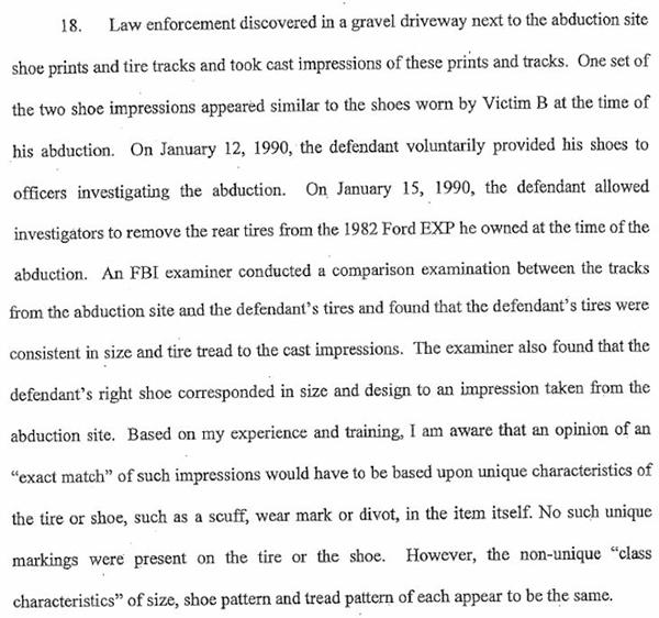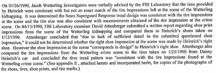 Investigators said Thursday Heinrichs vehicle tire tracks and shoe prints gathered in 1990 are consistent" with evidence gathered from Wetterling scene."
