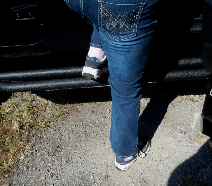 This was the test spot and my daughter in law getting in. Her foot is at an angle due to limits where I could place the Jeep.