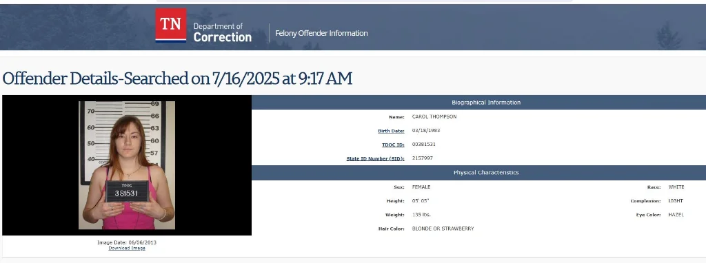 The Henry County Sheriff's Office is currently investigating a missing person case involving Carol Thompson. Carol was reported missing by her family on 07/14/2025 to the Henry County Sheriff's Office. The family states that they last seen Carol in November of 2024 but it was not uncommon for Carol to go for long lengths of time without contacting family.