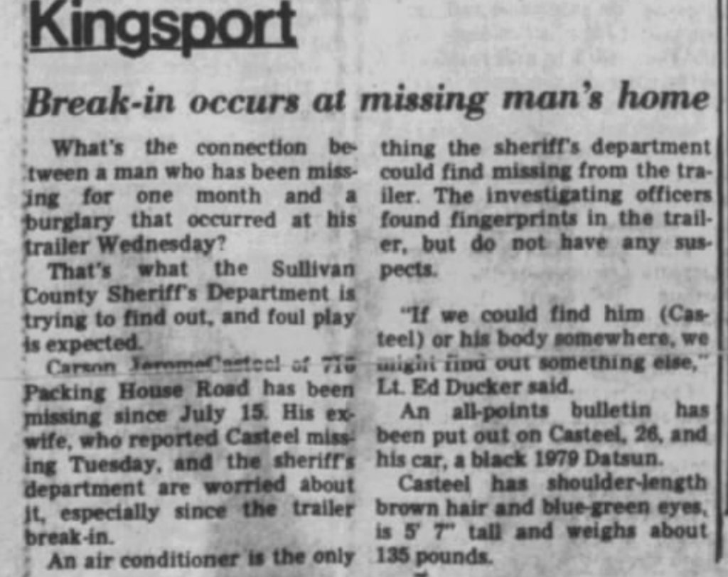 Circumstances of DisappearanceBURGLARY 0F RESIDENCE N0 TRACE 0F 0WNER