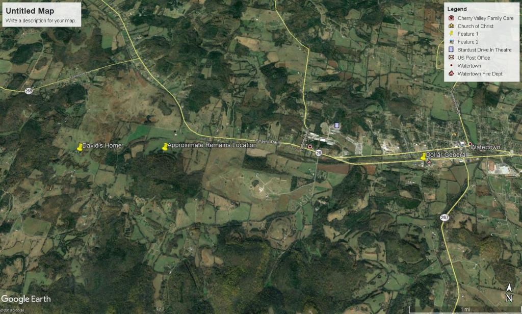 Been going over all the maps and I think I may have switched the properties where David lived and where he was found. Don't know how that could happen, but it makes sense now. He was indeed found on a property between the DG and his home, and not beyond.