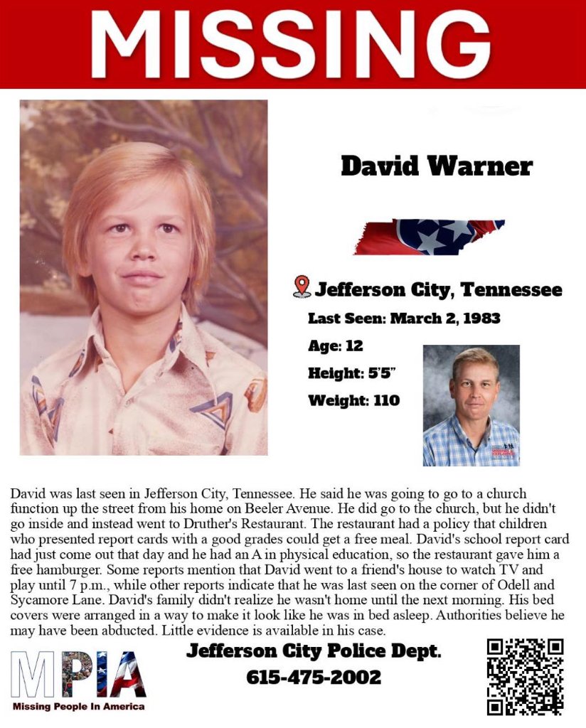 JEFFERSON CITY, Tenn. (WATE) — It’s been more than four decades since David Warner’s family last saw him in March of 1983, and there are still not clear answers about where the 12-year-…www.wate.com