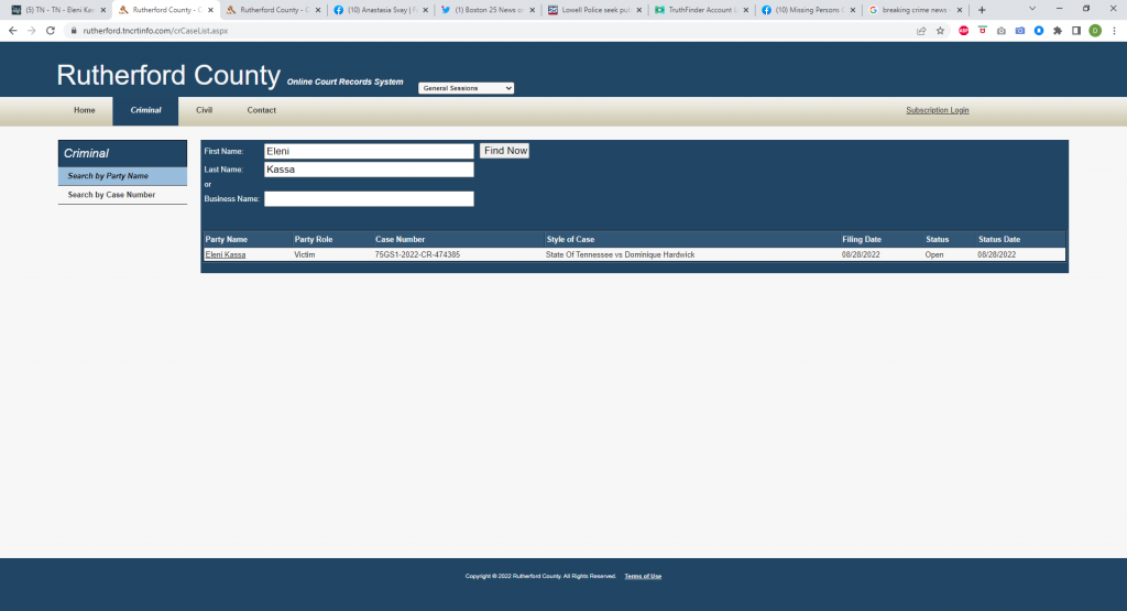 Per the Rutherford County records above, it seems that EK is listed as the victim in an ongoing case (offenses are assault and interfering with emergency calls) stemming from an incident in August 2022.