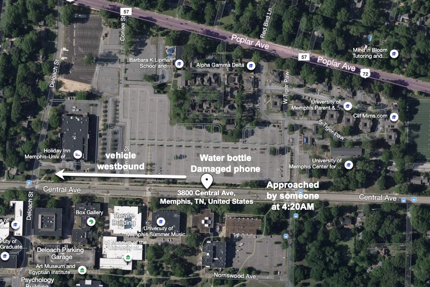LE - Okay, so I don't really have a whole lot of details to provide you, other than what we've already released. We received a call around 7.45 this morning from the University of Memphis. We came over to assist at this location around central and Zach Curlin. When we arrived on the scene we were handling, possibly, a missing person. After further investigation we found video that did show a black SUV pull into the area, across the street here, where the victim was taken. We're unable to Identify the suspect but we do know that the vehicle is a dark coloured SUV.