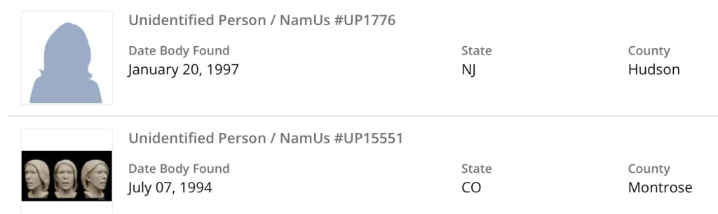 Caring1 Well-Known Member Websleuths Guardian 4 Year Joined Dec 11, 2021 Messages 6,645 Reaction score 16,786 Apr 2, 2025 #27 5 Unidentified Person Exclusions
