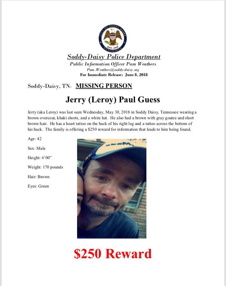 42-year-old Jerry (aka Leroy) Guess was last seen on May 30.