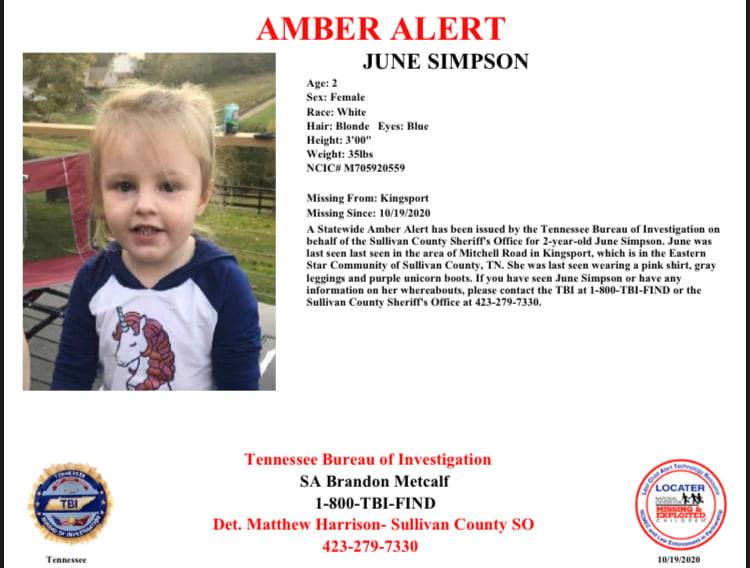 AMBER ALERT: We need your help to find 2-year-old June Simpson, who is missing from Sullivan County.