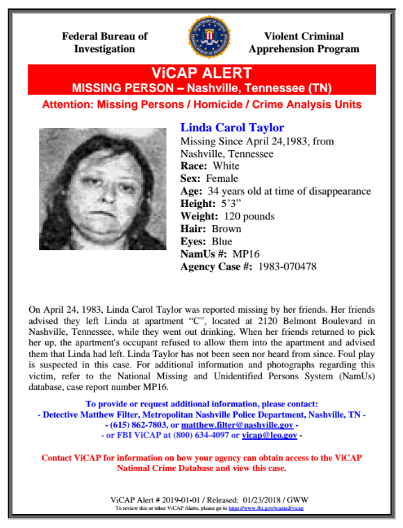interesting, because it also stated that investigators were let into the apartment and interviewed the man. Did law enforcement use luminol back then?FBI-VICAP Poster. Says occupant of apartment would not allow them into the apartment.