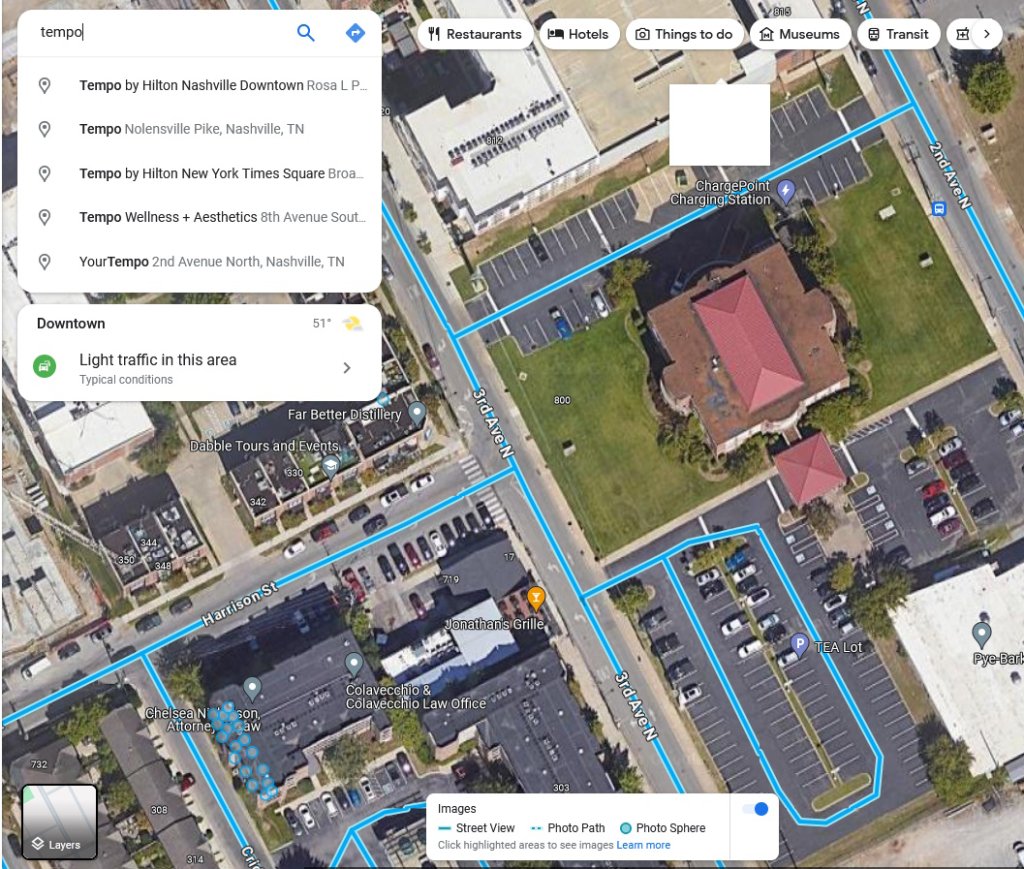 FWIW, Tempo by Hilton had been open less than a month. The street views (and satellite view) of it all show it under construction. Could this have affected the search results on that day? (i.e. a search ranking issue)