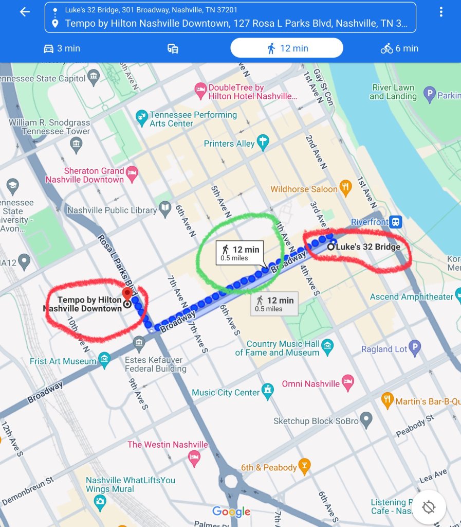I’ve not heard anything about his going back to the hotel, no. I’m also extremely dyslexic when it comes to maps, directions, visualizations, so it’s no wonder that I got it wrong.He was at a different part of Gay Street than that shown on your map. He was at the part right next to the river near the Woodland St. bridge.