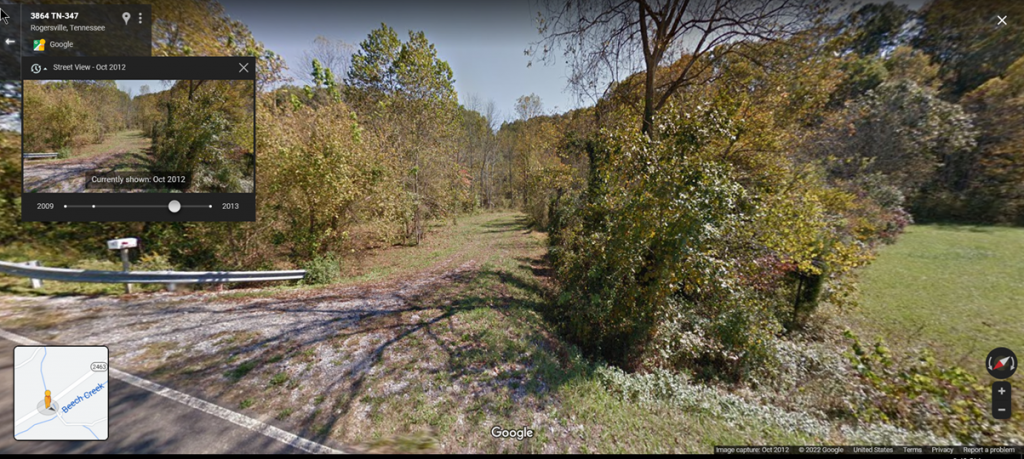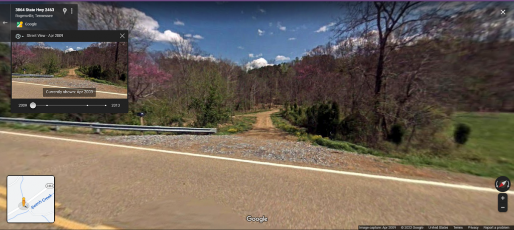In the 2009 screencap, you can see the red clay dug up off to the left like someone was getting ready to run a driveway off that way.