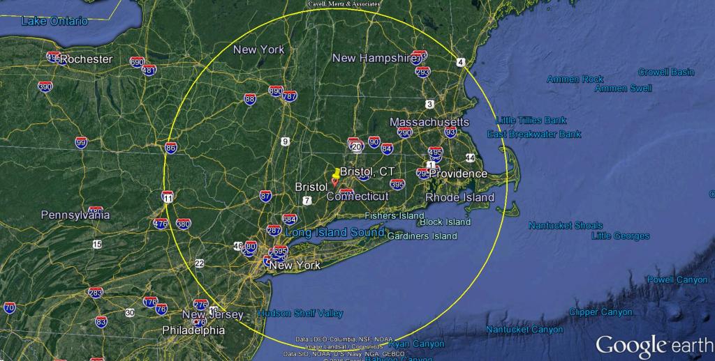 If we go by what the Tattoo artist stated, then the attached map would be somewhat of an approximation of 2 hours from Bristol, CT.
