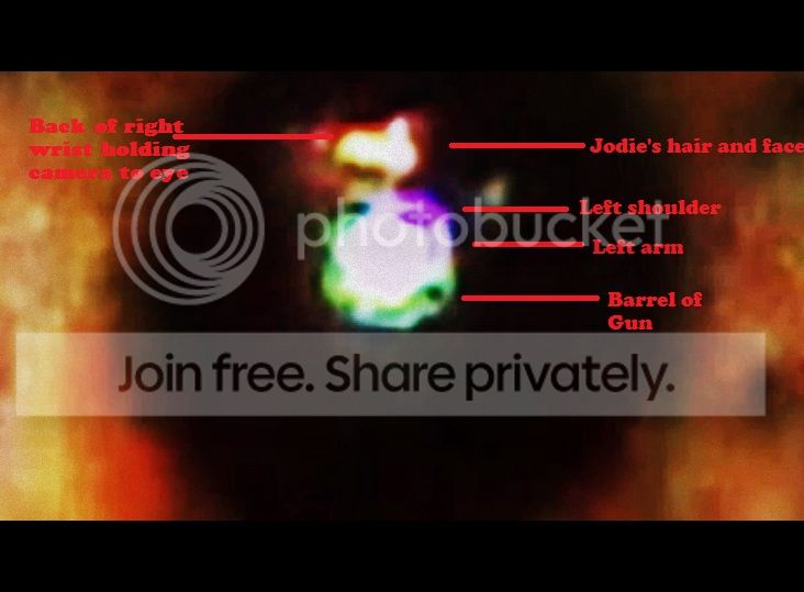 If she was holding a weapon in one hand and the camera in the other it would have to be the gun. If she was simply holding a knife on TA I don't think he would have just sat there and let her take the photo. He would immediately start trying to defend himself. A gun, on the other hand, is a different kind of threat. It might cause someone to become frozen with fear. Personally, I think she had the gun on her person and used it while he wasn't looking, to get the jump on him. Since she went there to kill him there would be no point in warning him in advance. IMO her plan began to go awry when the gunshot did not kill him and, for whatever reason, she was not able to shoot him again. That's when she went to get a knife to finish him off. In addition, I think her original plan was to shoot him in the shower so all the blood would go down the shower drain. She wanted to make sure she didn't get any of his blood on her to accidently take back to CA on her person or in her car. She thought she planned the perfect murder but, think again JA.