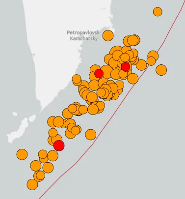 And there ya go. Orange are aftershocks for today, red is within the last hour.