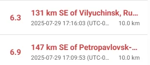 They are all up and down the fault line and all in the 4's and 5's. Yesterday they had a 6.3 and a 6.9, which was bigger than the 1989 Loma Prieta I witnessed live!!!