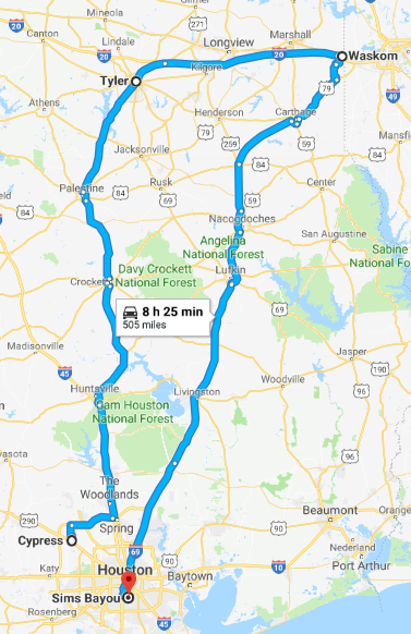 It's quite a hike from Tyler and Waksom, but is a somewhat popular dumping ground for bodies. Google "body sims bayou Houston".