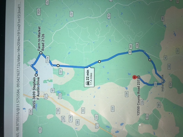 Thinking about that spot, if it was the northbound side and she was a passenger, the car should have been going north on 237 for her to get out on that side. You can turn around of course to head back into town, I did it in the driveway a bit down the way, not a lot of room to turn around on that section using only the road, at least not in my full size pickup. If you take 45 south you can hit CR 239 that meets CR237 and you could take that back north. I’m going to try to find the last spot she was seen and google map that route and see how many miles it is, you aren’t driving CR237 fast but 45 could be taken fairly quickly. If it makes sense mathematically I may drive that next time I’m in town.