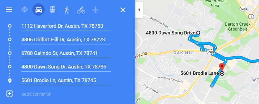 Someone asked about the Brodie Lane FedEx location compared to the others - looks super-close to the last bombing location on Dawn Song and Republic of Texas.