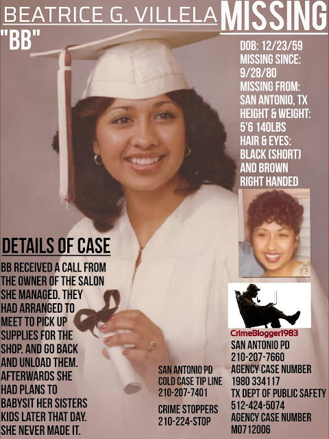 Beatrice Villela was last seen on September 28, 1980 in San Antonio, TX.