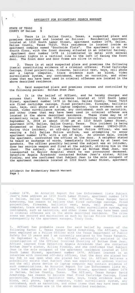 “officer Amber Guyger said she inserted her key into the door, and it opened because it had been slightly ajar. “