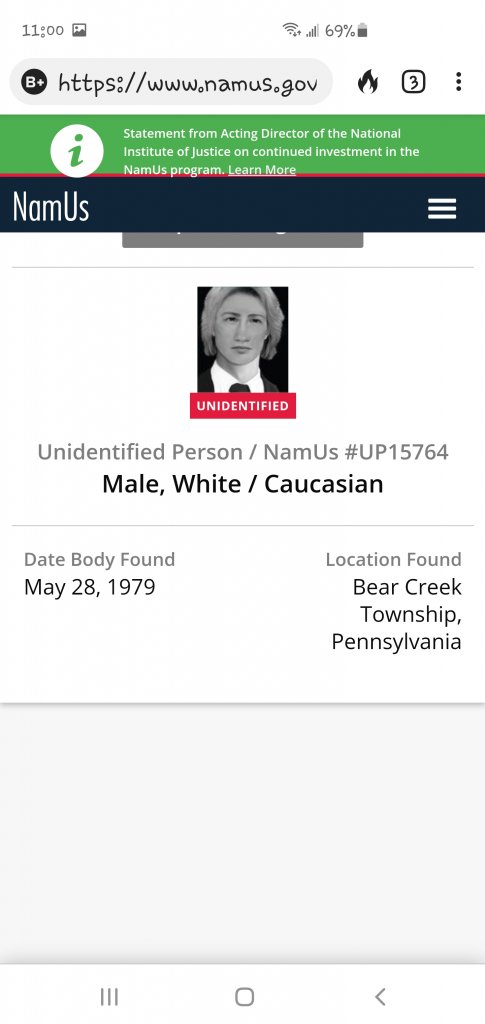 Recent Addition to NamUs.