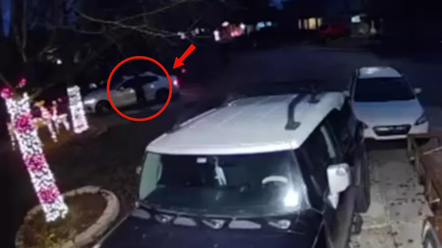 A neighbor’s home security camera shows a person standing outside of Camila’s car on the morning of Dec. 24. BCSO confirmed the person in the video obtained by KSAT is Camila Mendoza Olmos.