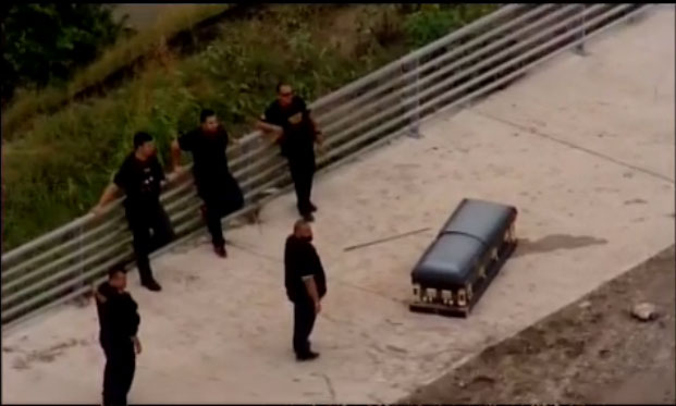No way of telling, of course, but it could be that this casket even came from a flooded or destroyed funeral home. Just not enough info yet to know one way or the other. Certainly strange, though.