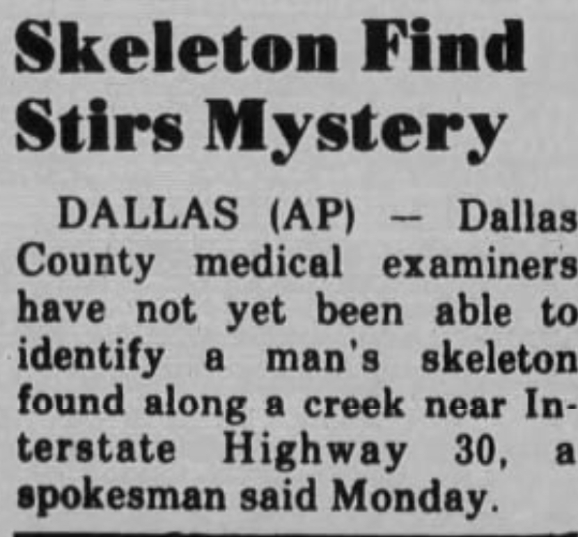 I don't have a newspapers.com subscription but this article seems to mention him. It says he was found in a creek off of IH30.