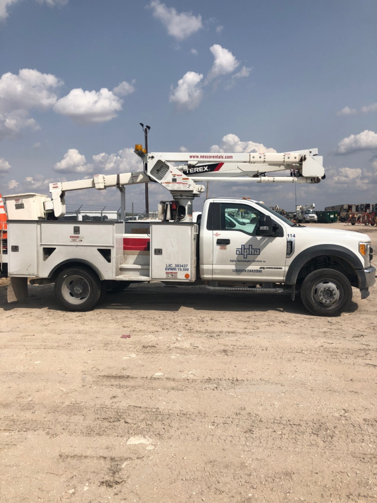 Investigators believe he entered a Ford F-550 work truck with New Mexico license plates and an Alpha business logo on the doors. The truck has a bucket attachment and a ladder.