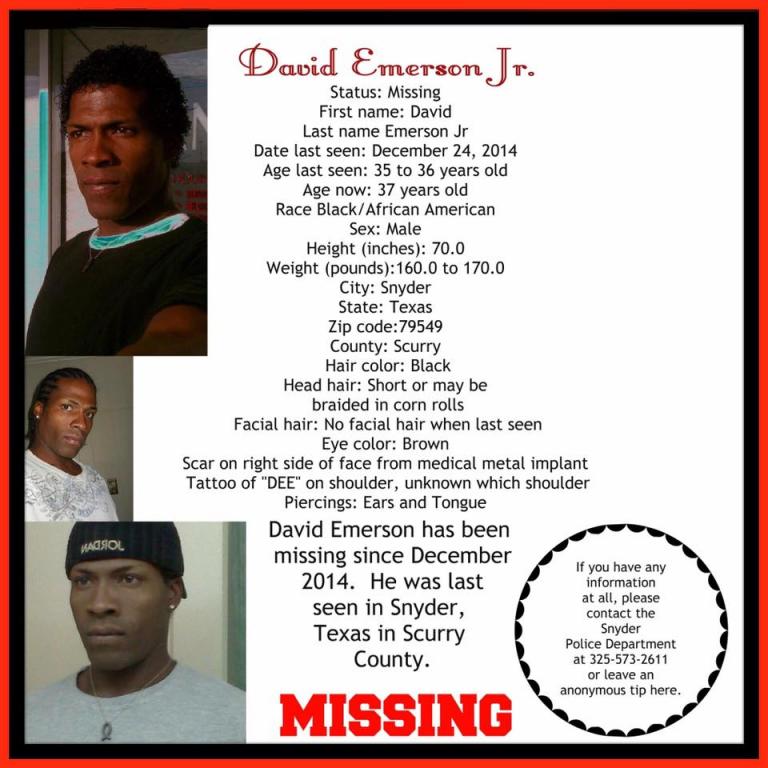 https://m.facebook.com/DavidEmersonJr.MissingTx/