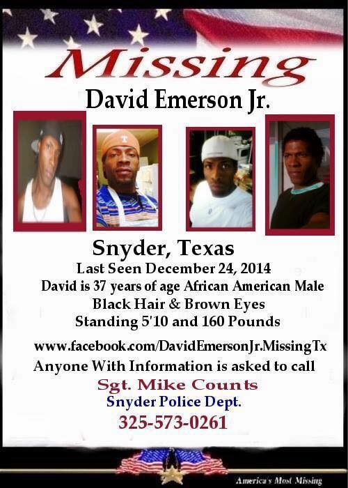 DAVID IS STILL MISSING- SNYDER, TEXAS 12/24/2014