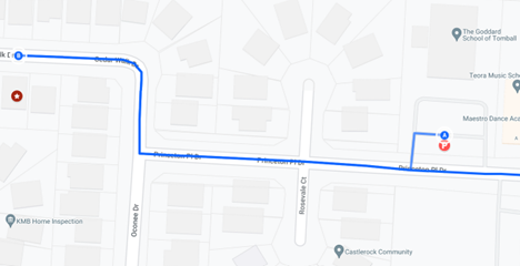 Point A – Goddard School; Point B – Barraza Home