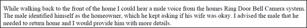Around this time, Sergio begins talking to law enforcement through his doorbell system. He asks if Liz is okay, but law enforcement only instructs him to return home.