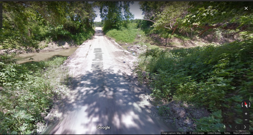 Ensign Road becomes NW County Road 1250. If the reports are correct, this is the spot - as shown in May 2013 - facing north & south at Chambers Creek where she was found , which is 7 miles from the center of town (as the crow flies).