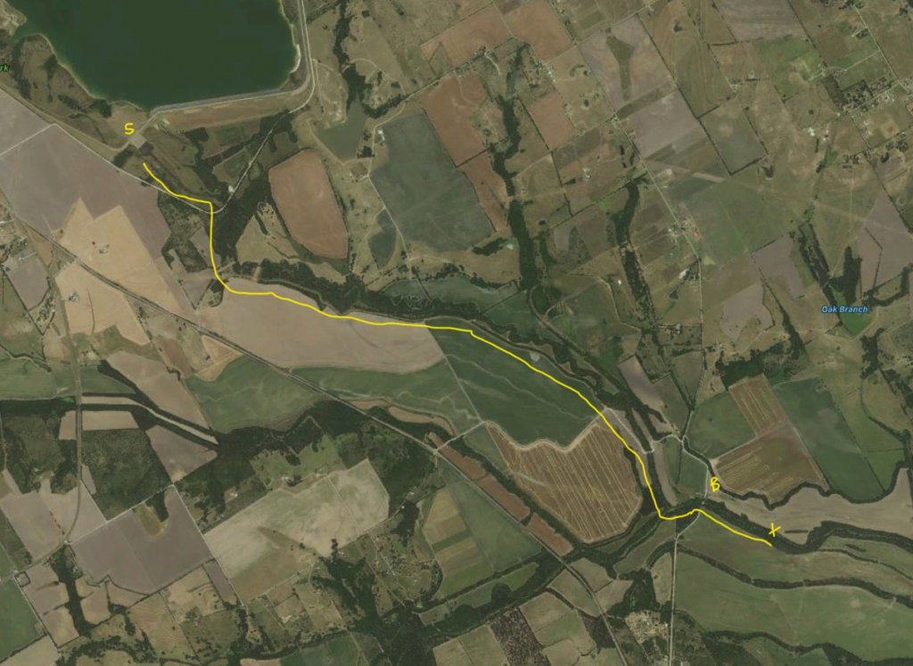 Since there is discussion of a car in Lake Bardwell, I have attached images of the Bardwell spillway, and the route a body would have to take to get to where Emily was found. S-spillway, B-Ensign Road bridge, X-body location just 600 yards below bridge.