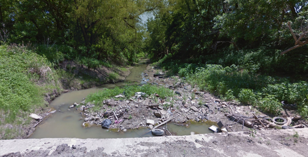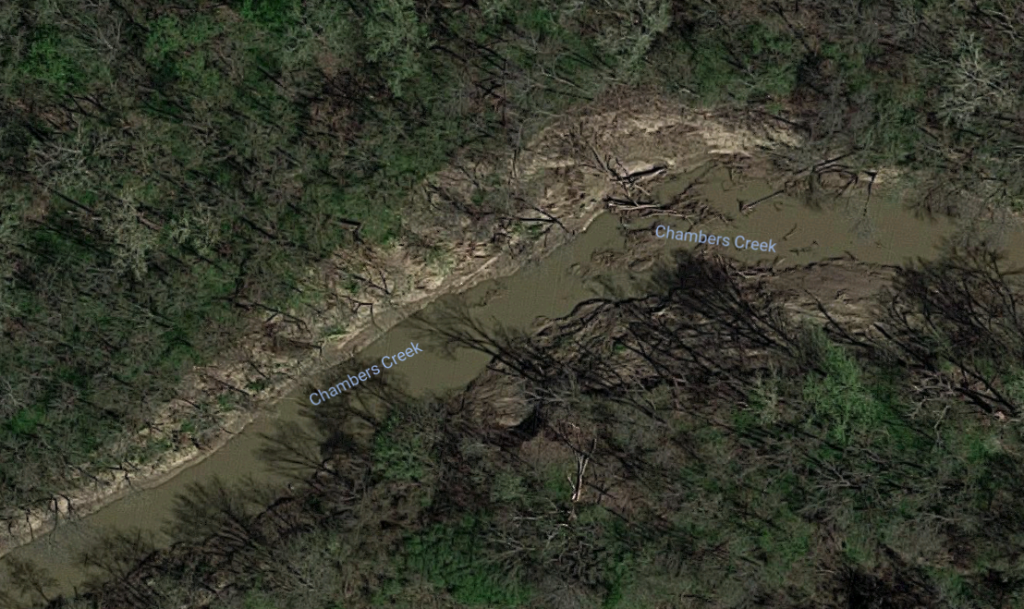 Second image from Google Maps, shows the Creek another 800 yards downstream from the body, showing a bend with plenty of downed trees that would likely catch a submerged car. Undated photo so it's not that relevant, other than I don't think there are many places a car could get completely buried in general.