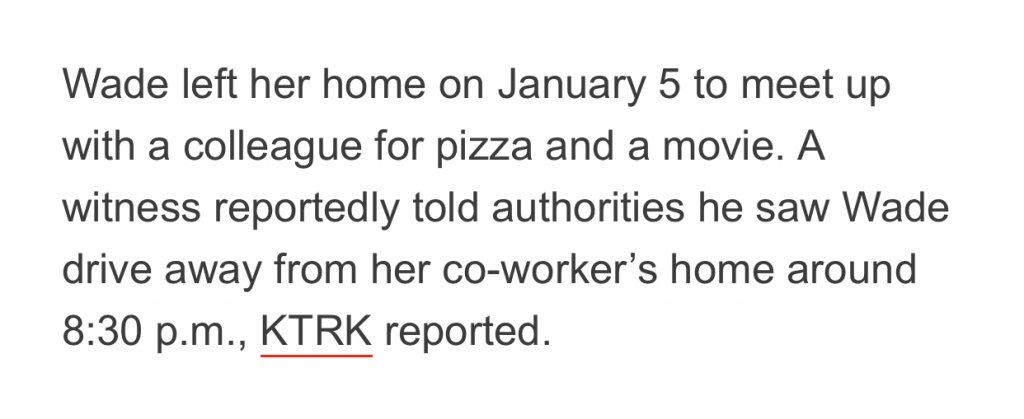 That’s what I was thinking. People have said they could have changed plates or painted the car, but I think it wouldn’t have been a planned thing if someone did something to her. So I don’t think they would have bothered to do anything but get rid of the car quickly. I’m still surprised the car has not been found or spotted on surveillance tapes.