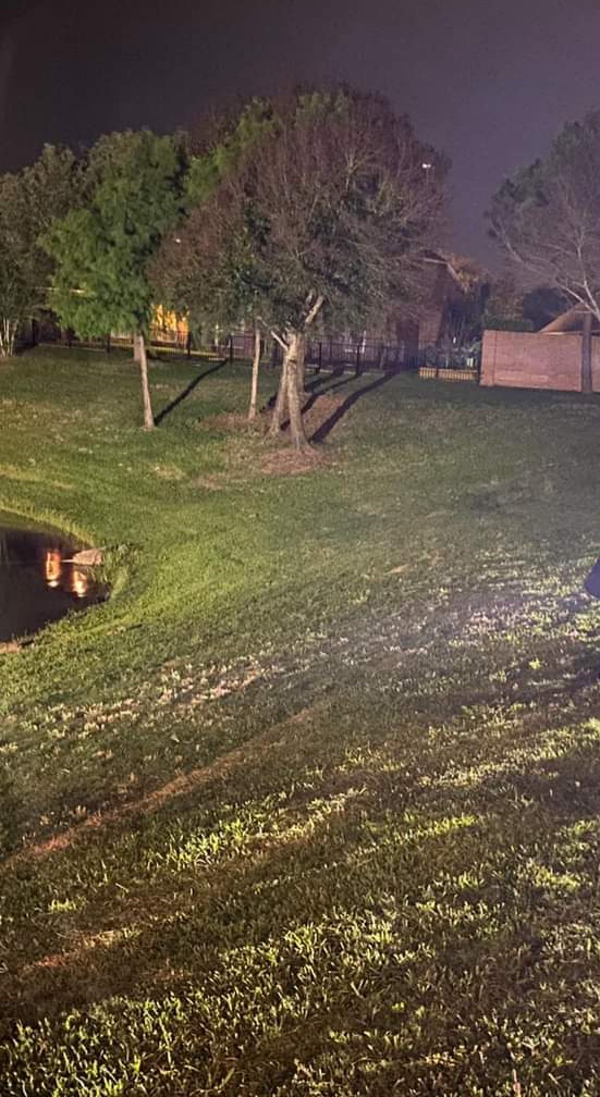 The dusk to dawn lighting is all around not to mention the homes surrounding the pond have interesting backyard illumination lighting. Iirc seeing the water features in the pond at night in this case also light up.