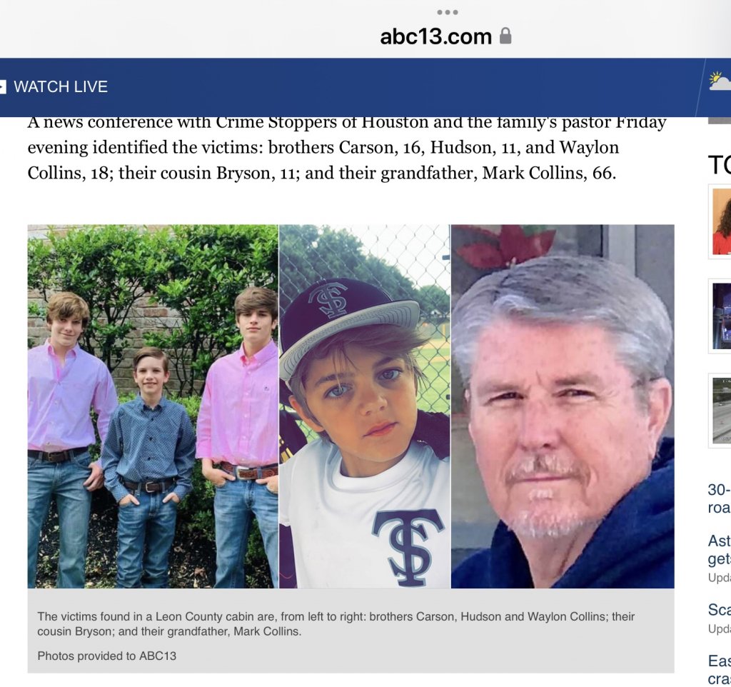 The ultimate definition of tragic. Unnecessary taking of their lives. I wish I could stop picturing the terror.And here are the pictures of this dear family, 3 brothers, their cousin, and grandfather to them all. This is gut wrenching…..