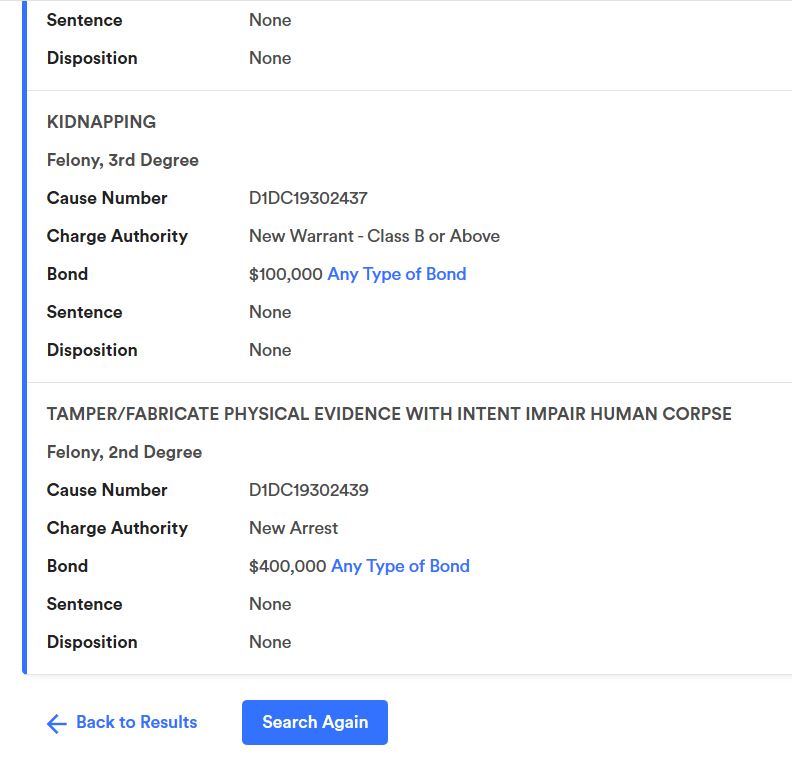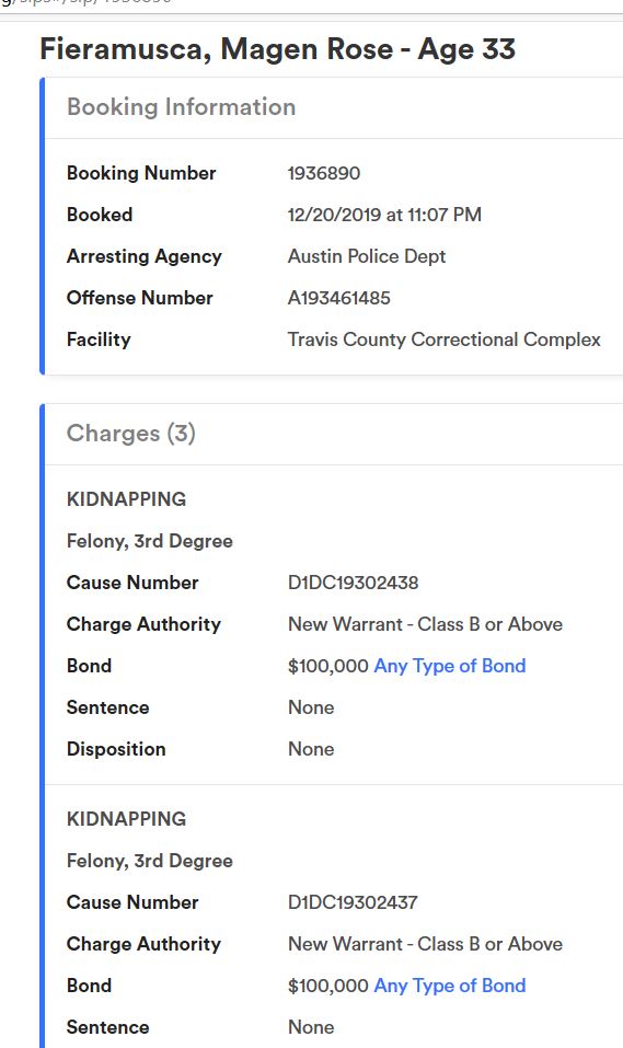 Go to Inmate Search and put in her last name Fieramusca. See the charges? Now do the same with the last name of Green in Austin, or in Houston. I see nothing related to this case.View attachment 222379View attachment 222384