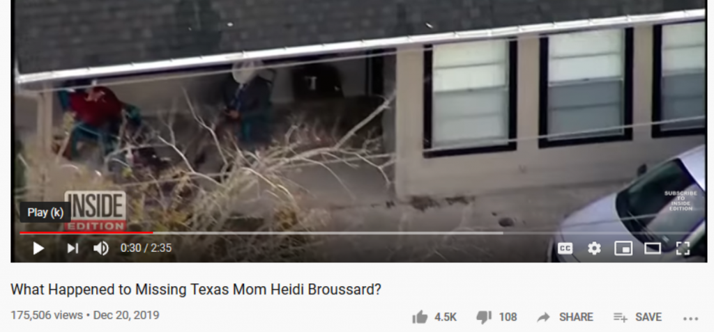ABC 13 reports that authorities conducted a “high profile investigation” at a home off of Bo Jack Drive in NW Harris County. Investigators secured the area with crime scene tape and were specifically concentrating on a Nissan parked in the driveway. The car reportedly belongs to someone that Heidi knows.
