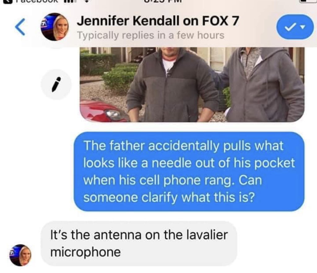 It’s part of the wireless microphone per reporter from Fox News 7.[/QUOT