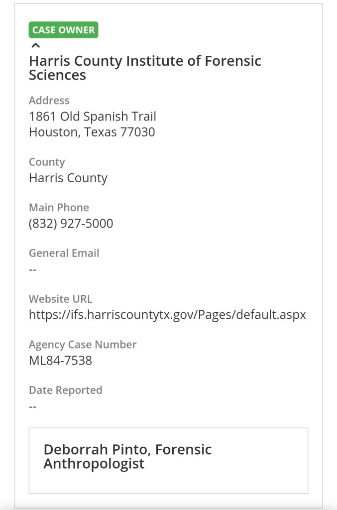 Great catch, @Vern! Are there any Spanish speaking Ancestry sleuthers here who wouldn't mind checking into this? The linked thread is 10 years old but I noticed the OP and one reply were edited in Nov 2020. This lady is still looking for her brother, Joe Cirilo. It seems to me she might need to get in touch with the Harris County ME's office.