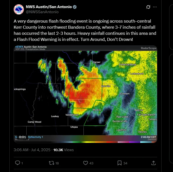 TX TX-Hunt, Overnight flooding at Camp Mystic, all girls camp. Unknown number of missing. July 4, 2025